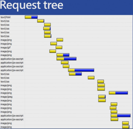 Page Request Tree when a page load in browser you will get page request tree as shown below. You can get this tree if you use Page Speed(web developer tool). This can be downloaded from here. You can also use the toll YSLOW to analyze your webpage, can be downloaded from here.