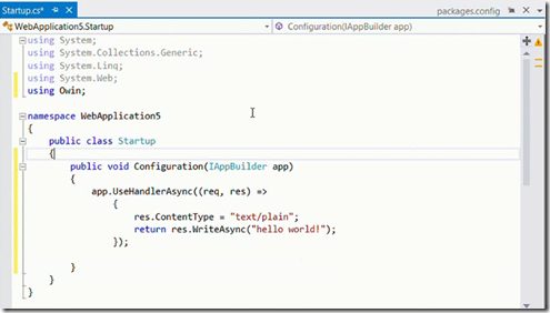 Now create a class called Startup and add the configuration method