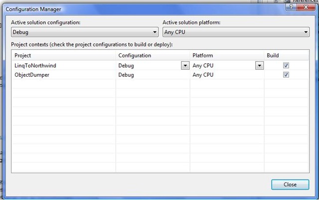 - Solution Configurater Right click your solution in your IDE then select the ConfigurationManager you see the following window