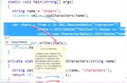 - Extract Method you can select the code and click on extract method in smart window and shows the preview as shown in the window