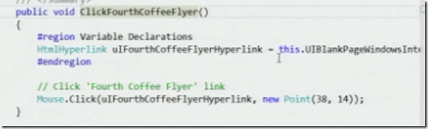 Now these test methods captures the individual actions that tester was performing when they recorded that test case. You can see the below as an example for clicking the hyperlink in the UI